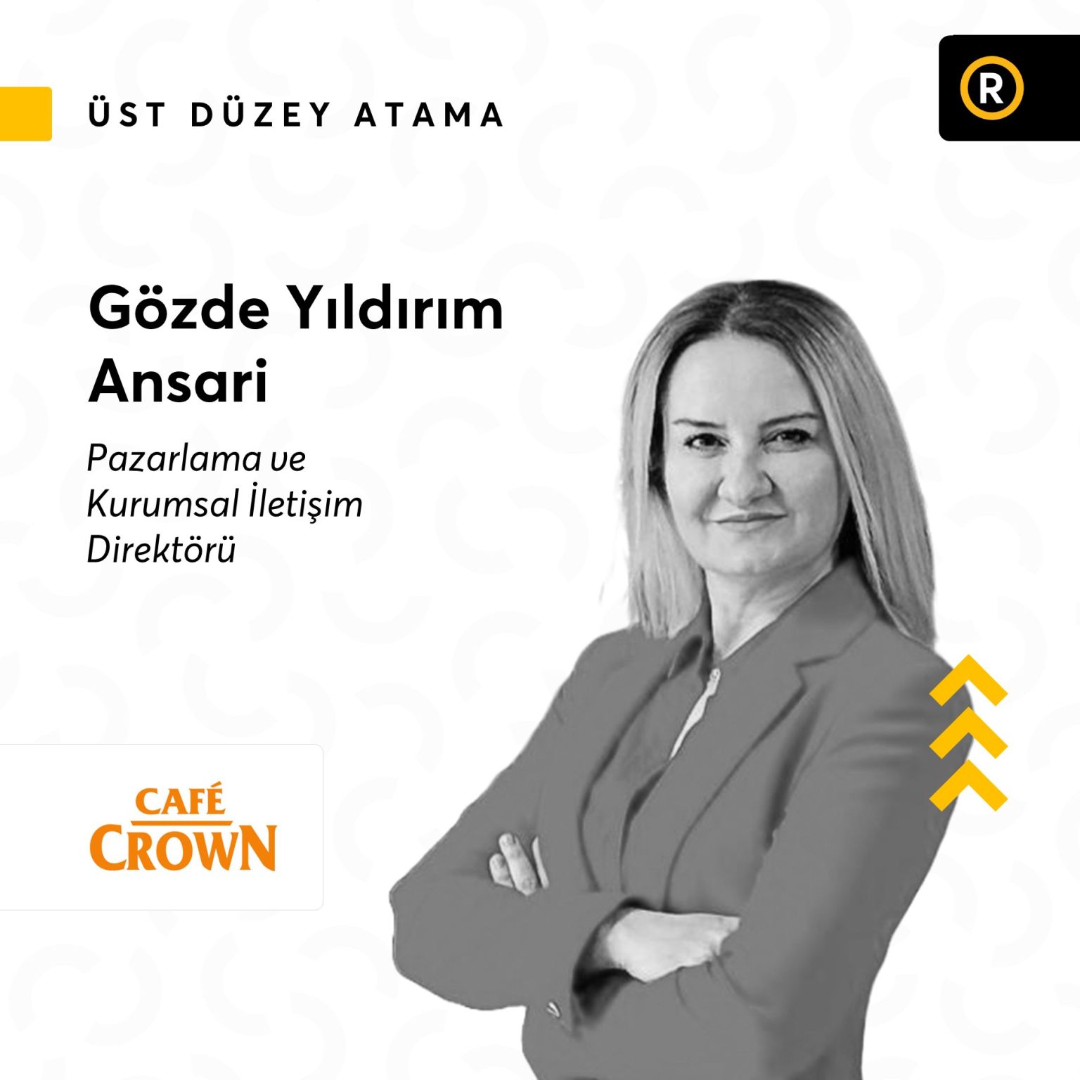Buna göre, Café Crown Pazarlama ve Kurumsal İletişim Direktörlüğüne Gözde Yıldırım Ansari atandı. Markanın kurumsal iletişim çalışmaları ve yeni pazarlama stratejilerinin hayata geçirilmesine liderlik edecek olan Yıldırım Ansari, şirket hedefleri doğrultusunda dijital ve geleneksel iletişim, kampanya yönetimi, müşteri deneyimi, sürdürülebilirlik ve etkinlik stratejileri gibi süreçlerden sorumlu olacak.