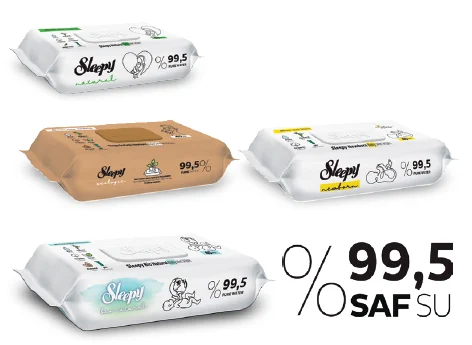 Bu beklentiyi çok iyi bilen Sleepy, yenidoğan bebeklerin hassas cildini korumak için ıslak havlu solüsyonlarını yüzde 99,5 oranında saf su içerecek şekilde geliştirdi.