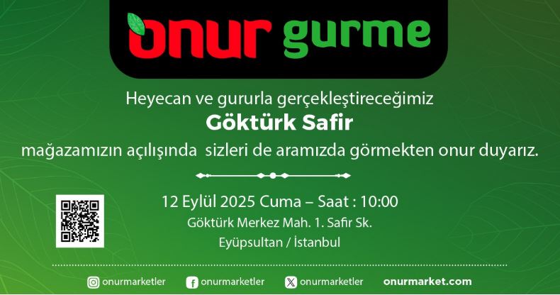 Modern mağazacılık anlayışını güçlü tedarik altyapısıyla birleştiren Onur Market, geniş ürün yelpazesi ve uygun fiyat politikasıyla sektörün öncüleri arasında yer alıyor. Bu vizyon doğrultusunda İstanbul Göktürk’te gurme konseptiyle hazırlanan yeni mağazasını açıyor