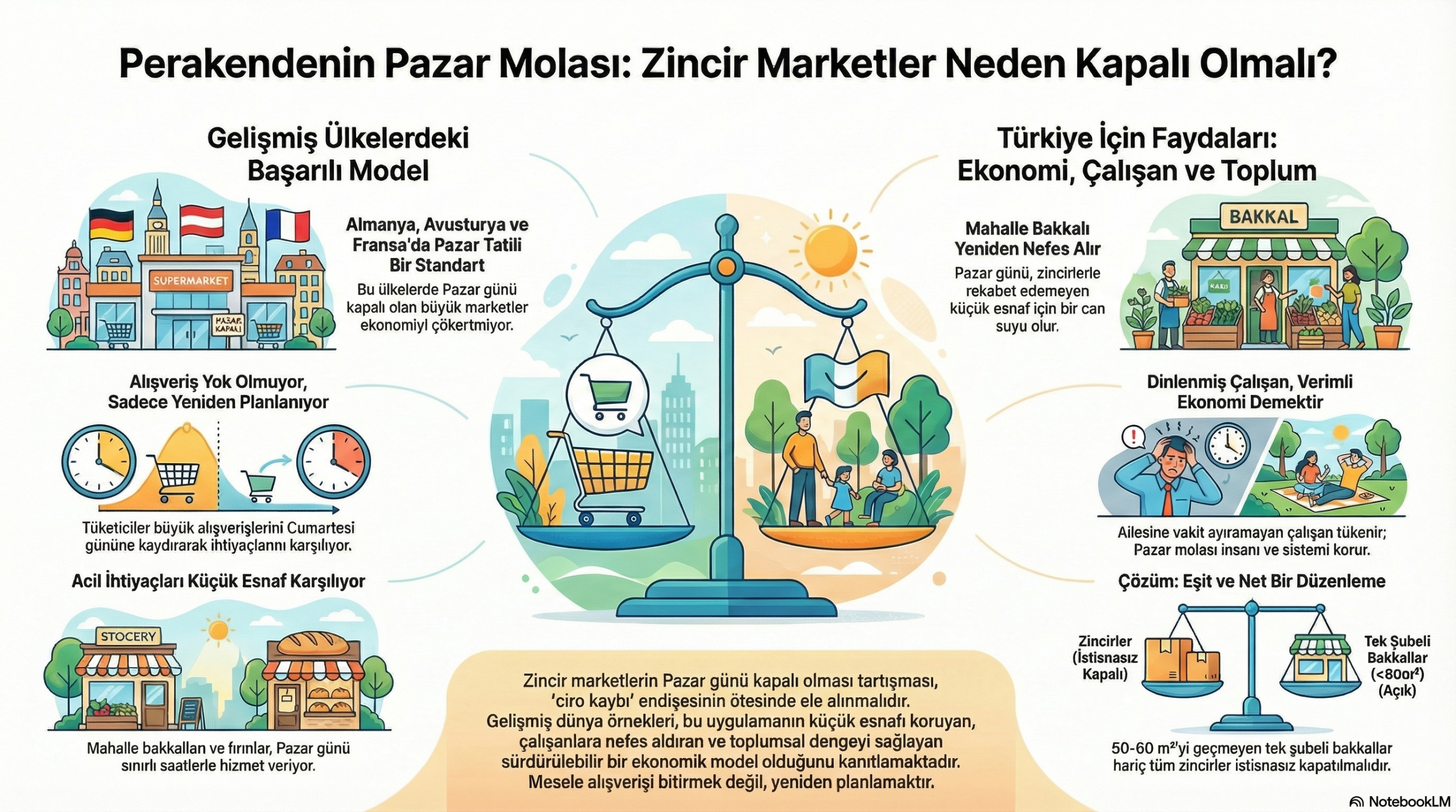 Pazar günü zincir marketlerin kapalı olması tartışması, çoğu zaman yanlış bir yerden okunuyor. Konu yalnızca “alışveriş özgürlüğü” ya da “ciro kaybı” üzerinden ele alındığında, büyük resmi kaçırıyoruz.