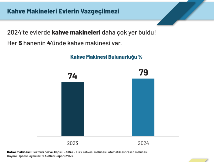 Satın alınan bu kahvelerin evde nasıl tüketildiği, kahve makinesi sahipliği trendleriyle daha net bir şekilde anlaşılmaktadır.
