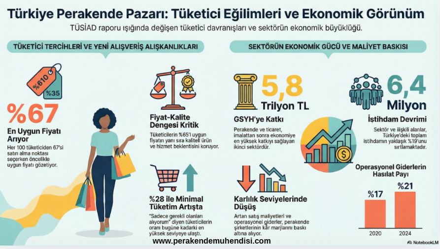 TÜSİAD Perakende Çalış­ma Grubu faaliyetleri kapsa­mında EY-Parthenon Tür­kiye tarafından hazırlanan ‘Türkiye Perakende Pazar Değerlendirmesi’ başlıklı rapor düzenlenen basın top­lantısı ile tanıtıldı. Rapor; küresel öl­çekte perakendeyi şekillendiren yeni nesil tüketiciler, kanallar arasındaki sınırların ortadan kalkması, hızlanan teknolojinin entegrasyonu, sürdürü­lebilirlik, tedarik zincirinde esneklik ve yeni nesil iş gücü uygulamaları gi­bi trendlerin Türkiye’deki yansıma­larını kapsamlı bir şekilde ele alıyor. Türkiye genelinde 800 kişi ile yapılan saha araştırması sonuçlarına göre tü­keticiler, satın alma noktası seçerken öncelikle daha uygun fiyat sunan yer­lere yöneldiğini ortaya koyuyor. Rapo­ra göre, 100 tüketiciden 67’sinin daha uygun fiyatlar sunan noktaları tercih ettiğini söyledi. Tüketicilerin satın al­ma noktası seçerken en çok dikkat et­tiği bir diğer faktörün yüzde 65 ile ka­liteli ürün ve hizmete baktığını orta­ya konuldu. Öne çıkan bir diğer nokta ise bugünlerde sadece gerekli olanları alıyorum diyenlerin sayısı yüzde 28 ile en yüksek seviyede bulunuyor. Ra­porda diğer öne çıkan önemli noktalar ise 2020 ve 2024 yılları arasında tüke­time dayalı ve perakende şirketleri­nin kârlılık seviyelerinde düşüş oldu. Satışların maliyeti, hasılatın yüzde 2’si oranında artış göstermiş; operas­yonel giderlerin hasılat içindeki payı 2020 yılında yüzde 17 iken 2024 yılın­da yüzde 21 seviyesine ulaştı.